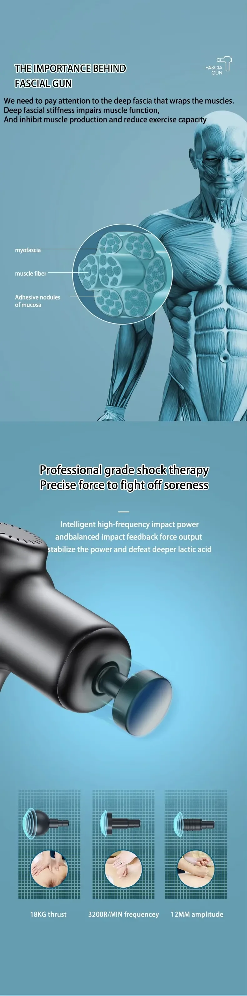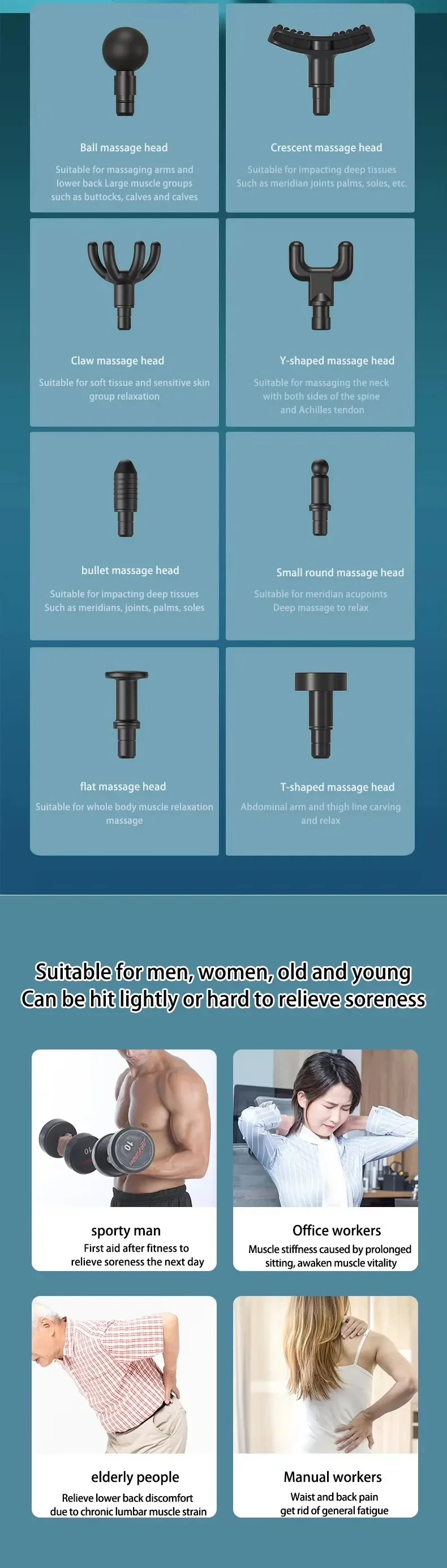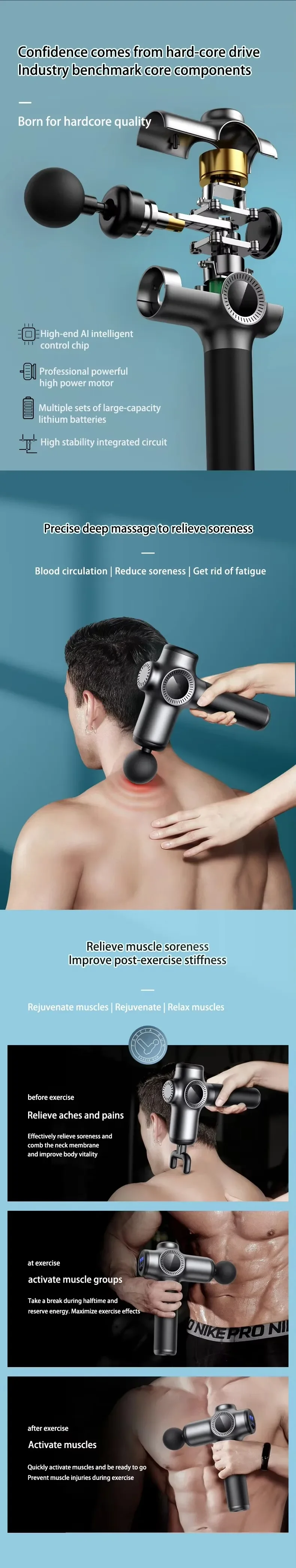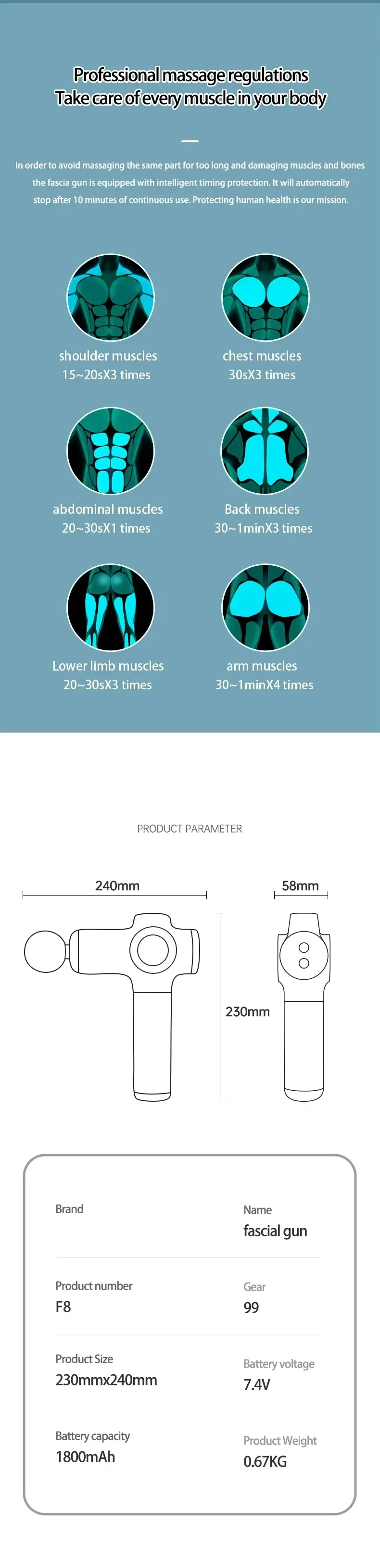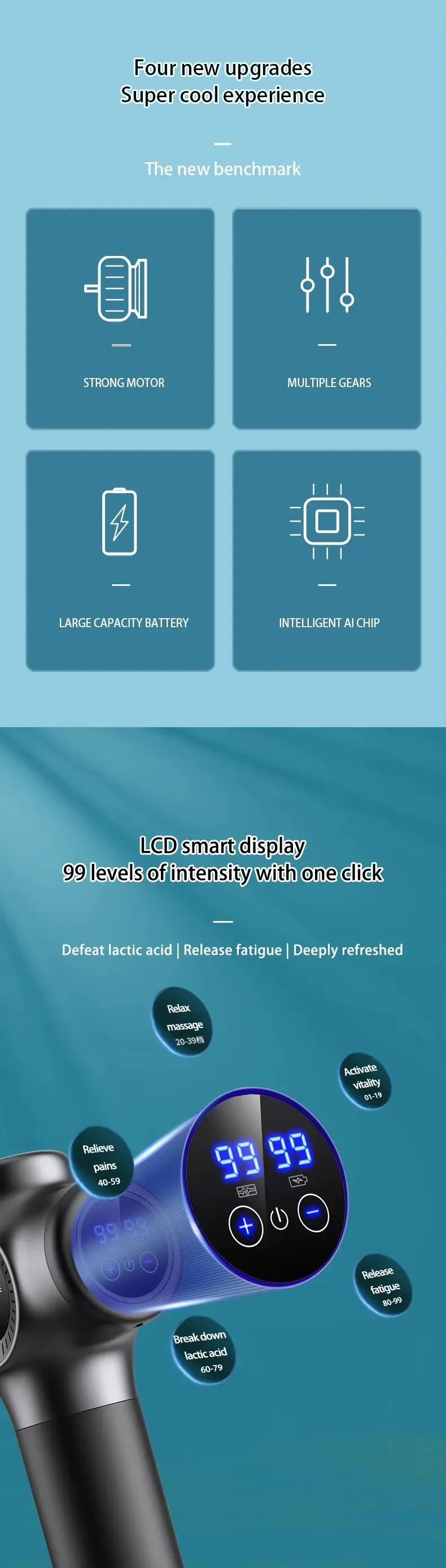 Grey Deep Tissue Percussion Body Massage Gun with LCD Touch Screen and 8 Heads.